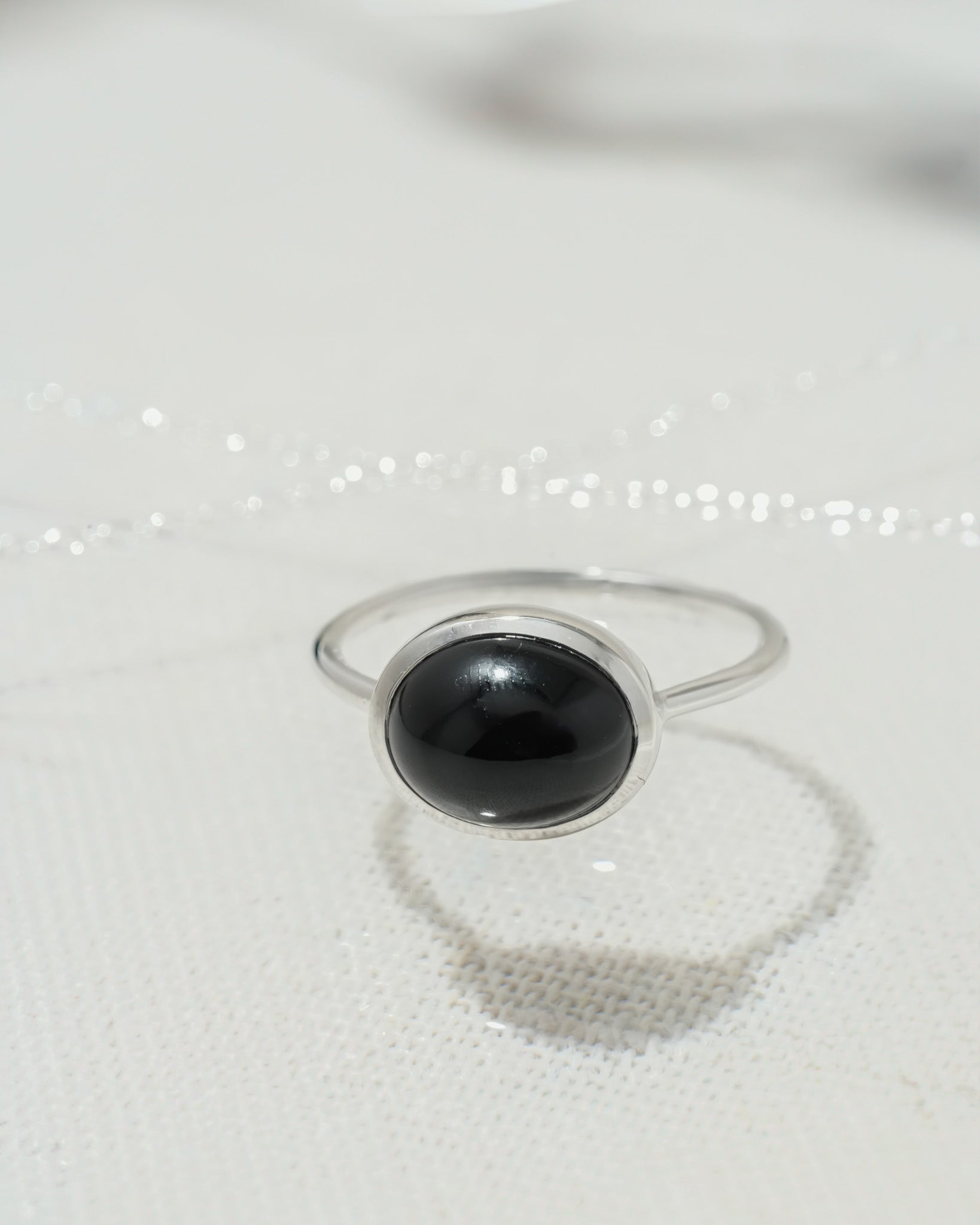 オニキス カボションオーバルリング(Silver925/ロジウム)