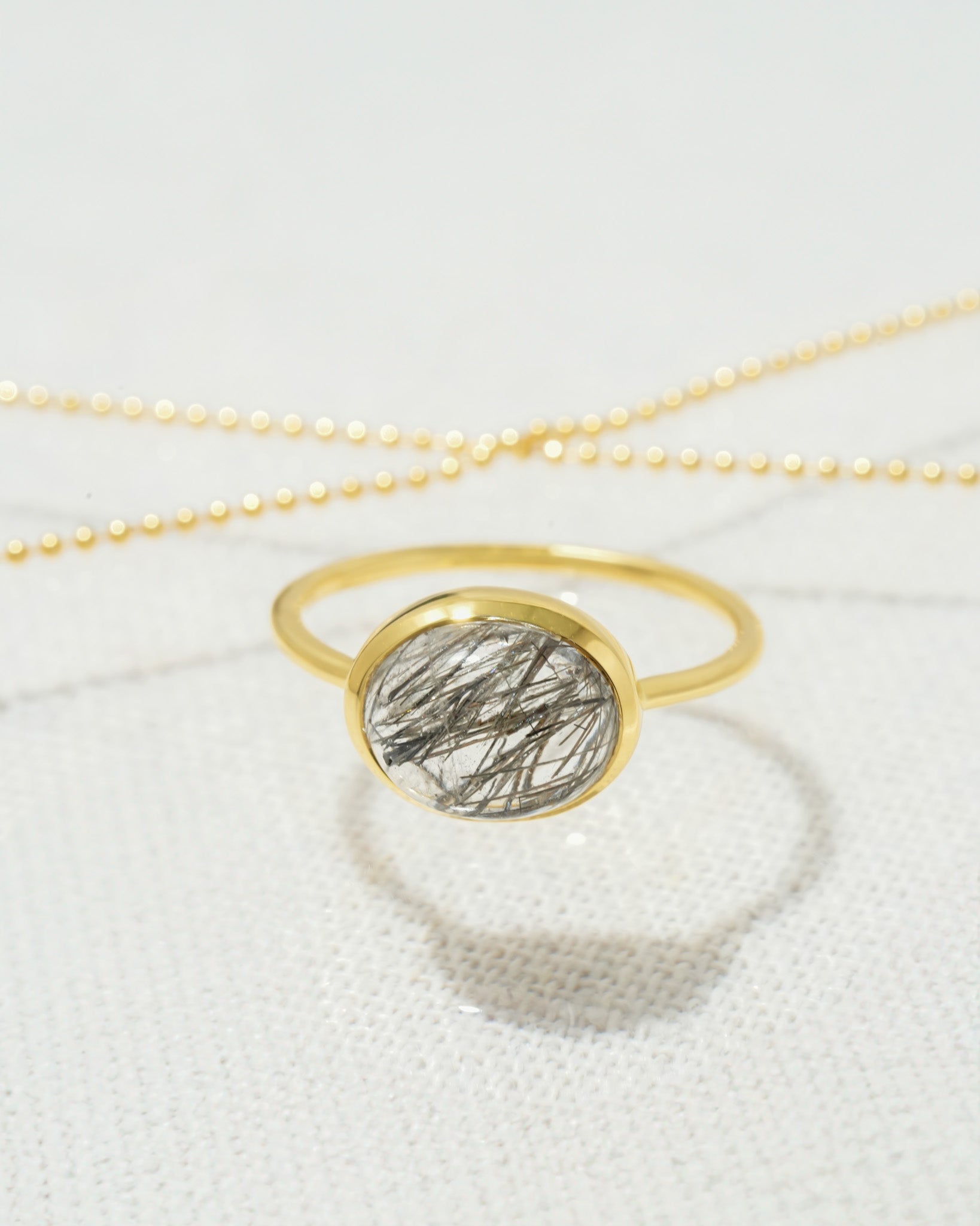 ブラックルチルクォーツ カボションオーバルリング(Silver925/K18GP)