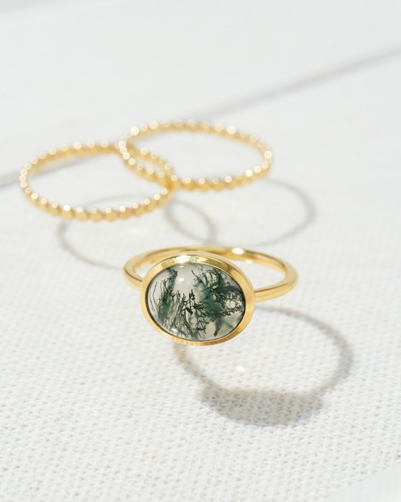 モスアゲート カボションオーバルリング(Silver925/K18GP)